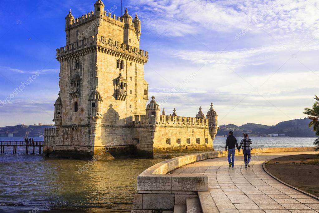 BLUE SKY TRAVEL OUTDOORS WATER PROTECTION ANTIQUE HERITAGE OLD RIVER SUNSET ARCHITECTURE TOWER COUPLE ROMANTIC TRADITIONAL CULTURE WORLD TOURISM CITYSCAPE LANDMARK FAMOUS ANCIENT EUROPE DISCOVERY WALK HISTORIC MONUMENT HISTORY PORTUGAL HISTORICAL ATTRACTION MEDIEVAL DRAMATIC LIGHTHOUSE PLACE FORT TOURISTIC CASTLE DESTINATIONS UNESCO TORRE FORTRESS FORTIFICATION LISBON PORTUGUESE BELEM LISBOA TEJO