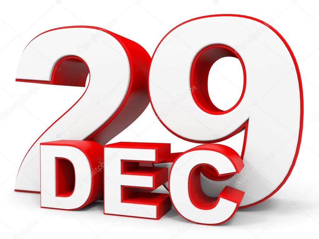 December 29. 3d text on white background. Illustration.