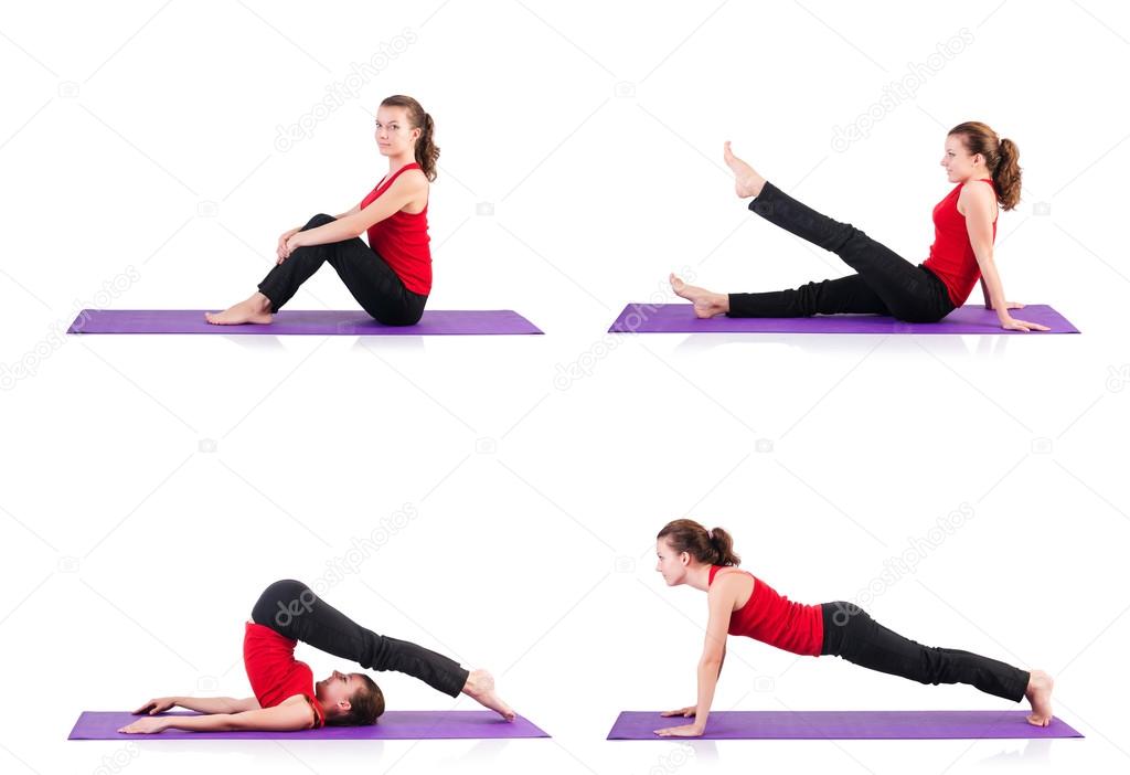 - Young female doing exercises on white