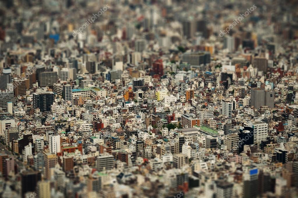 Tokyo urban rooftop view background tilt-shift effect, Japan.