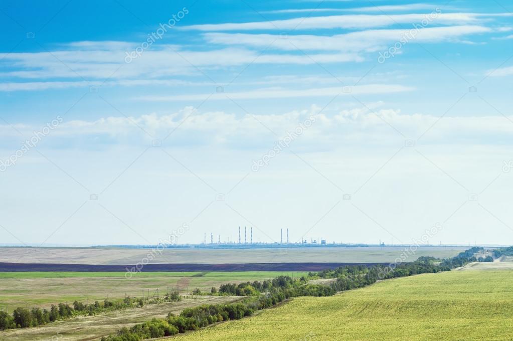 - Landscape with agricultural land and industrial facilities on the horizon