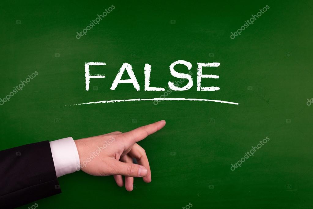 Businessman pointing on green blackboard with text false