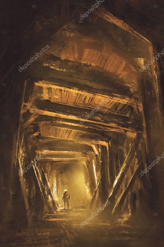 Inside of the mine shaft, illustration, digital painting