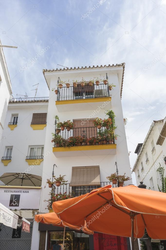 - architecture and street of white flowers in Marbel
