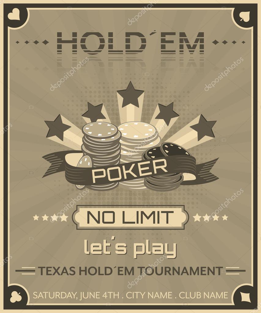 Poker background in retro style. Poster for poker tournament with ribbon and poker chips.