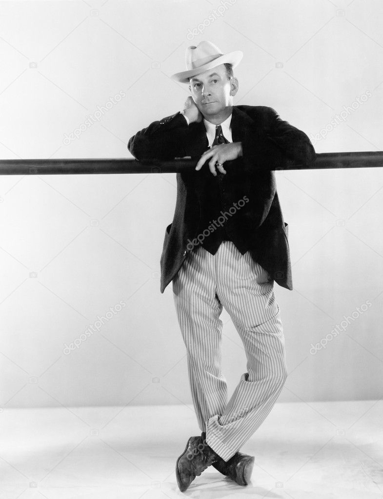 WHITE ON YEARS HOLDING PERSON ONE ADULT PORTRAIT MAN BLACK RETRO VINTAGE FUNNY YEAR POSE NOSTALGIA NOSTALGIC SUIT INTERIOR BALANCE ONLY LOOKING CAMERA BEAM GUY TIE POSING STANDING AT MID AGAINST HEADSHOT HISTORICAL 30 HUMOROUS 40 LEANING A COMEDY COMICAL AND VEST PORTRAITURE SOMETHING HATS W WIT 30 40 WITTY 30 40S