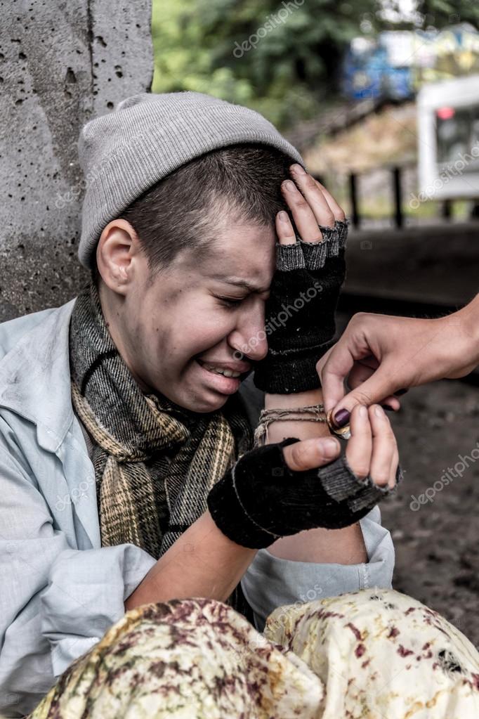 MONEY HORIZONTAL CLOSE UP FEMALE ADULT SCARF GLOVES HAT URBAN CRYING WOMAN LIFESTYLE SHIRT HELP DIRTY LONELINESS ALONE OUTSIDE MISERABLE DEPRESSION DESPAIR POOR POVERTY COINS BEG DONATION CHARITY HOMELESS SURVIVAL NEEDY UNEMPLOYED HELPLESS HOPELESS DONATE JOBLESS BEGGAR DESPERATION VAGABOND DISPLACED DISPOSSESSED 20 25 YEARS RAIL TRACK STREET STYLE CREW CUT