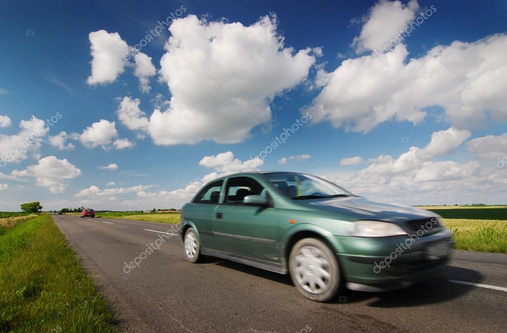- Car on road through countryside with beauty clouds