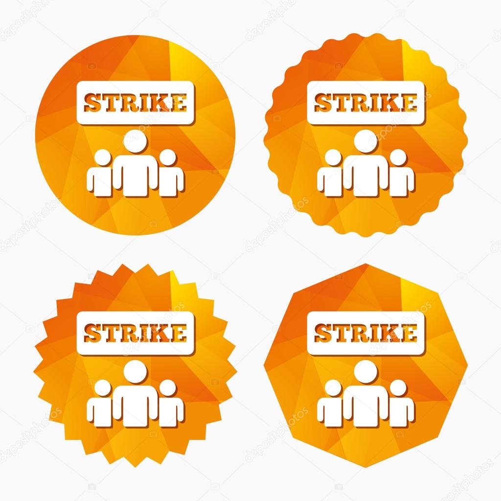Strike sign icon. Group of people symbol. Industrial action. People protest. Triangular low poly buttons with flat icon. Vector