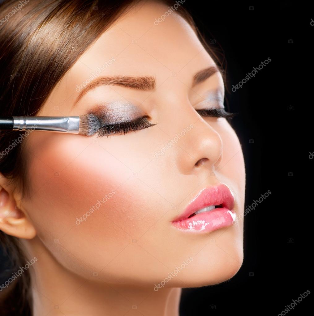 Make-up applying. Eye shadow brush