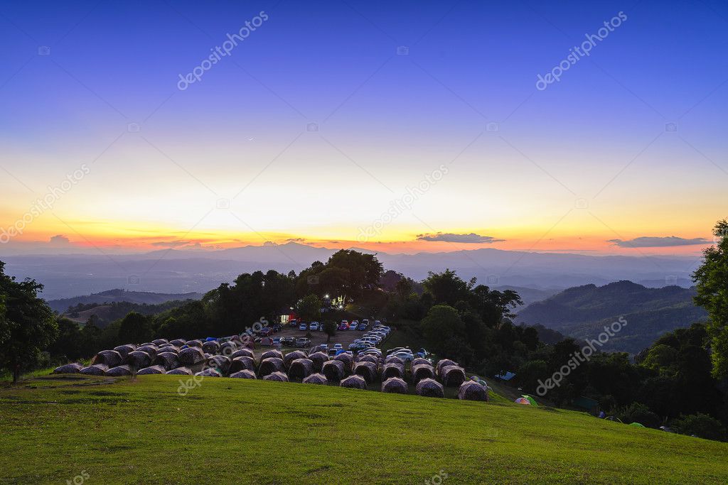 The twilight scene after the sun set at the nation park with the tents