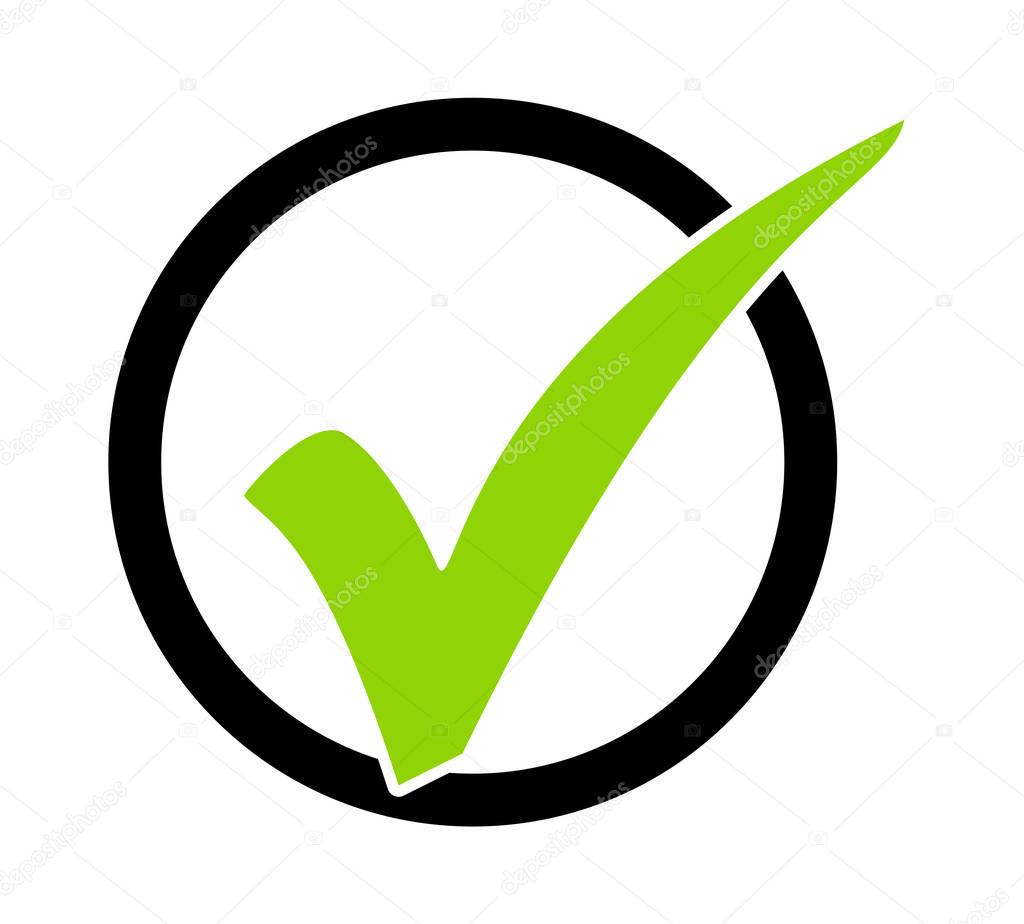 Isolated modern green Tick Symbol with black circle