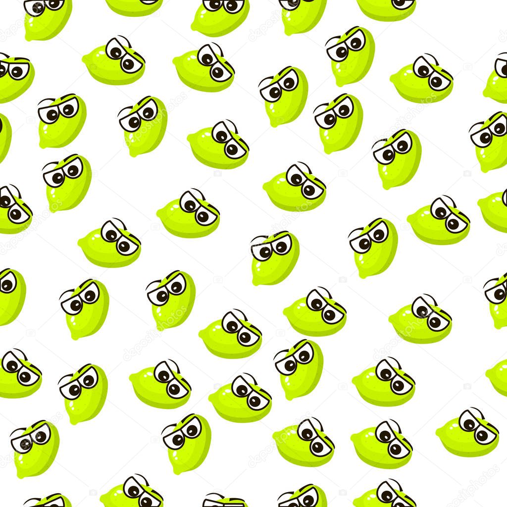 Very high quality original trendy seamless pattern with fresh lime and slice character, personage or face