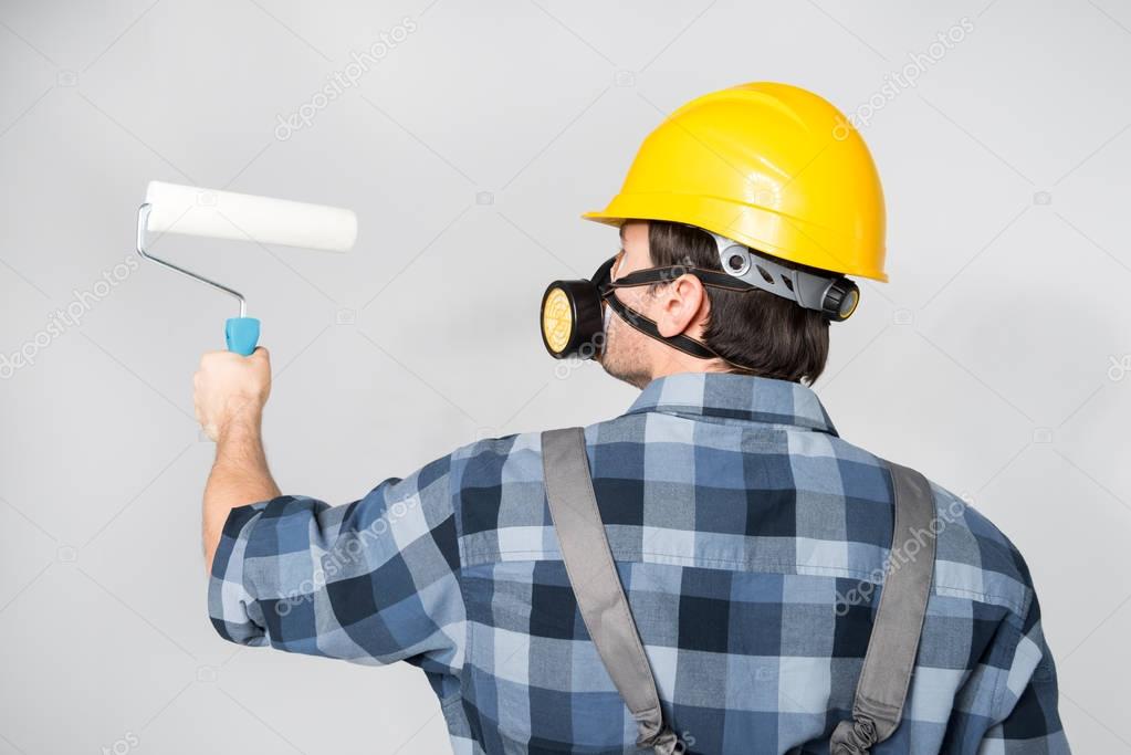 Construction worker with paint roller