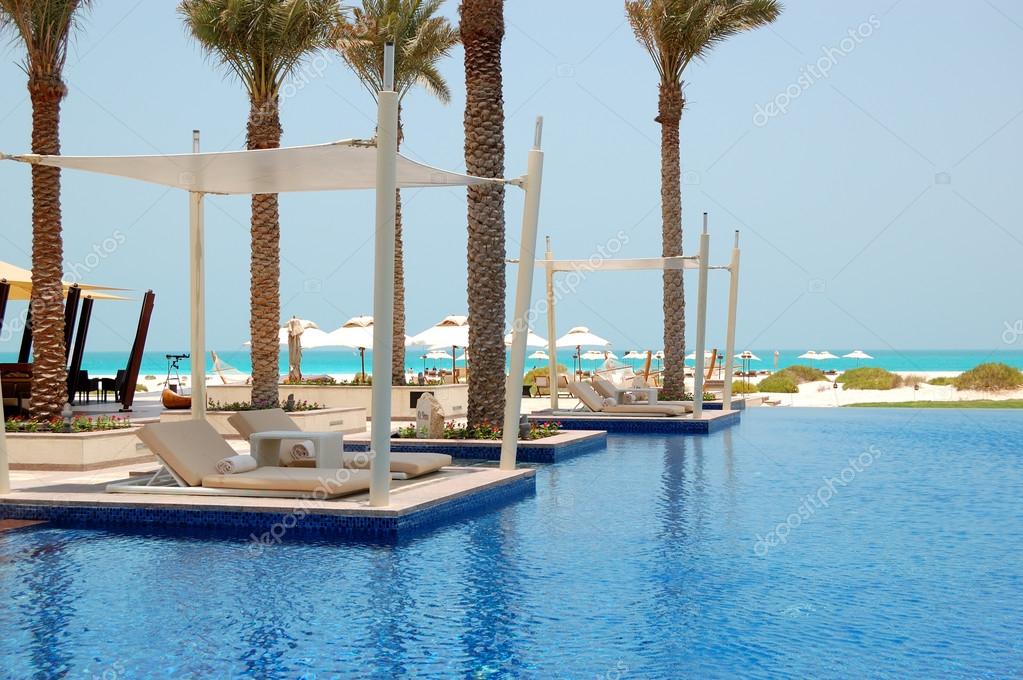 Swimming pool near beach at the luxury hotel, Saadiyat island, A