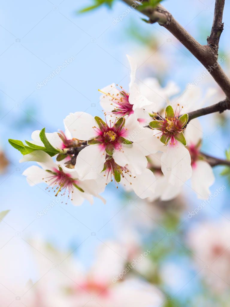 Close up of beautiful flowering sweet almond tree