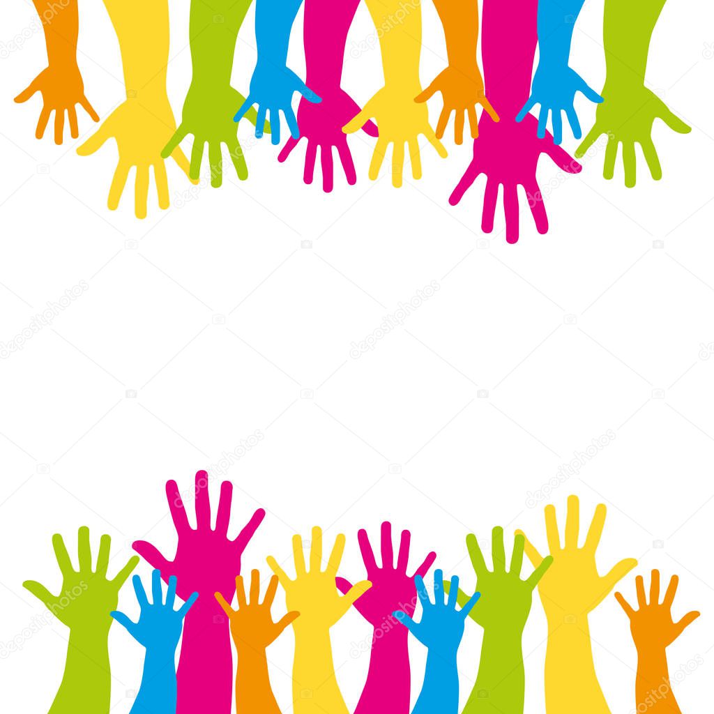 background with multicolor support hands