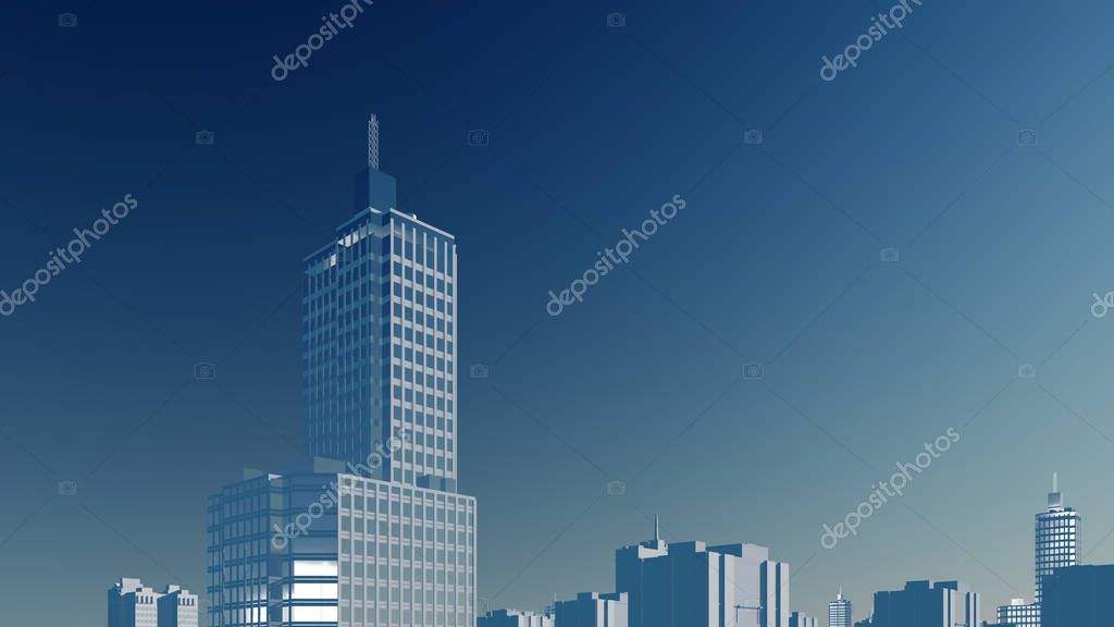 BLUE BACKGROUND NOBODY VIEW SKY DAY DECORATIVE SIMPLICITY BUSINESS COMMERCIAL FINANCIAL ABSTRACT CARTOON 3D MODERN CONCEPT ARCHITECTURE BUILDING CENTER CITY CONSTRUCTION DOWNTOWN EXTERIOR FACADE OFFICE SKYSCRAPER STRUCTURE TALL TOWER URBAN BLANK DIGITAL SIMPLE FUTURE CITYSCAPE TOWN SKYLINE DISTRICT HIGHRISE ARCHITECTURAL METROPOLIS RENDERING DAYTIME MEGAPOLIS METROPOLITAN URBANSCAPE HIGH RISE SCALE MODEL 3D ILLUSTRATION