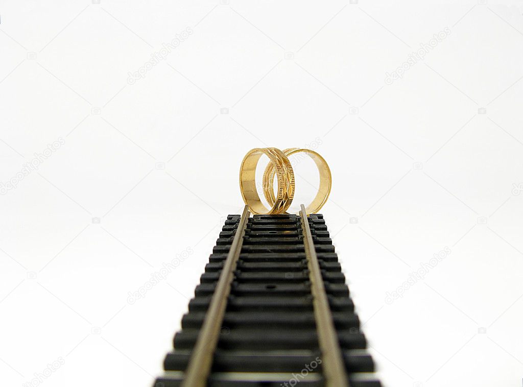 IMAGE WHITE OBJECTS NOBODY GENERATED ON PHOTOGRAPHY ISOLATED JEWELRY CELEBRATION DAY GOLD LOVE TRANSPORTATION LANDSCAPE WEDDING TRADITIONAL TWO WITH WAY TOGETHERNESS CULTURE RING DIGITALLY TRACK JOURNEY TRUST TRAIN DIRECTION MARRIED RAILROAD FORWARD DESTINATION ENGAGEMENT CEREMONY THE THOROUGHFARE VOWS TO NEWLYWED INTERLOCKED