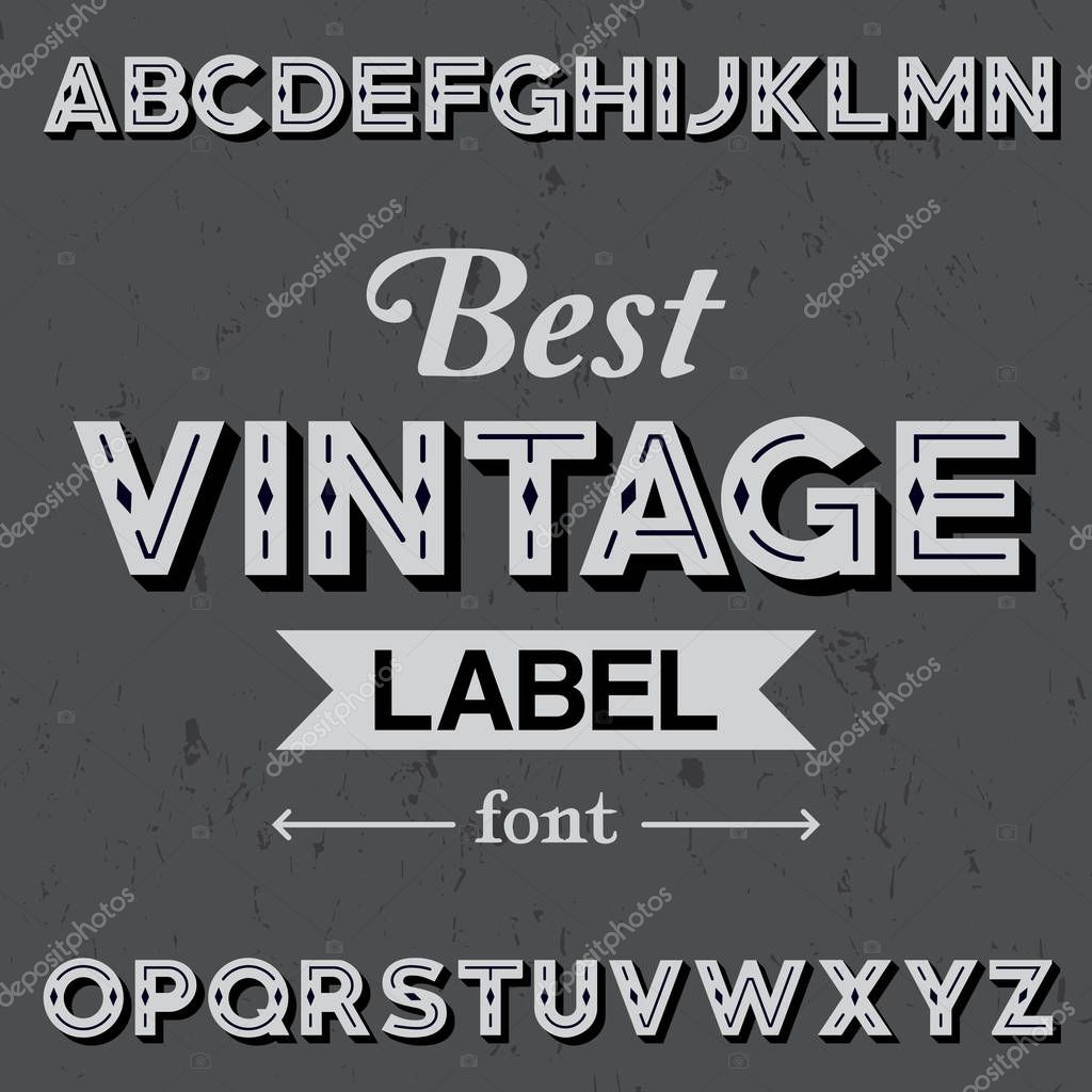 Best Vintage Label Font Poster with alphabet on the grey background vector illustration