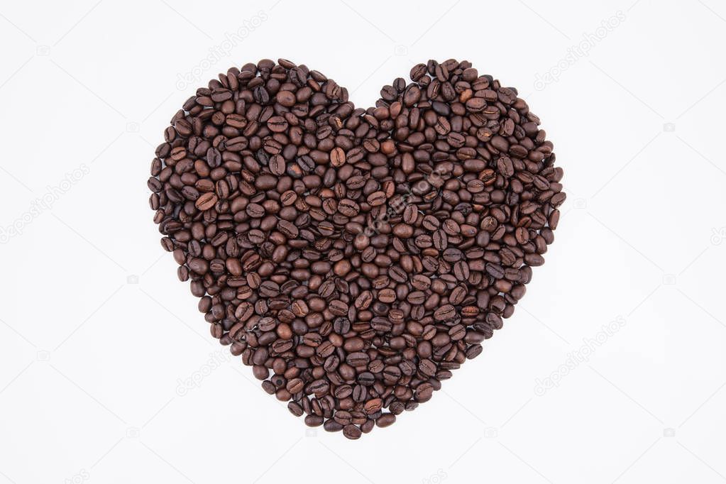 Heart of coffee bean on white background
