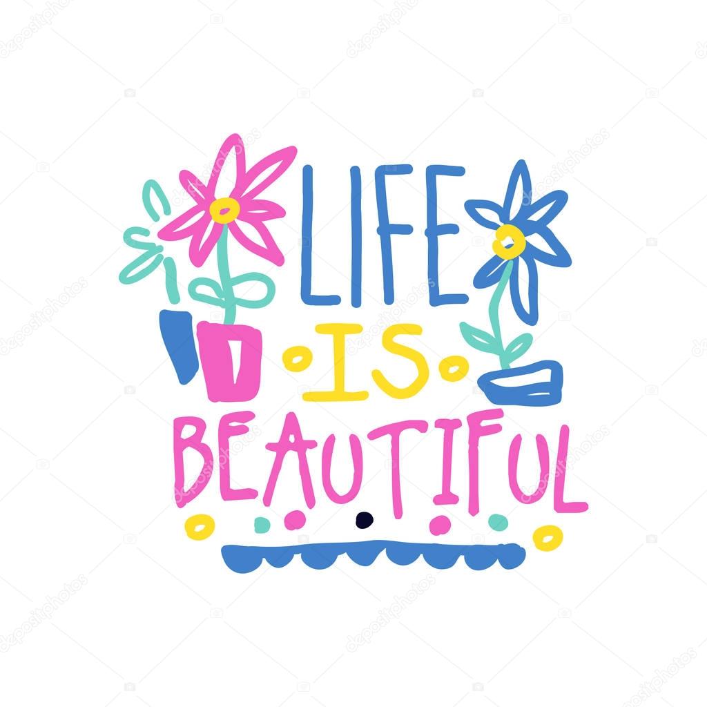 Life is beautiful positive slogan, hand written lettering motivational quote colorful vector Illustration