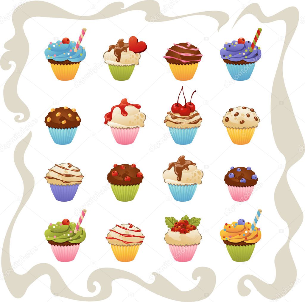 - set of yummy cupcakes isolated on white background