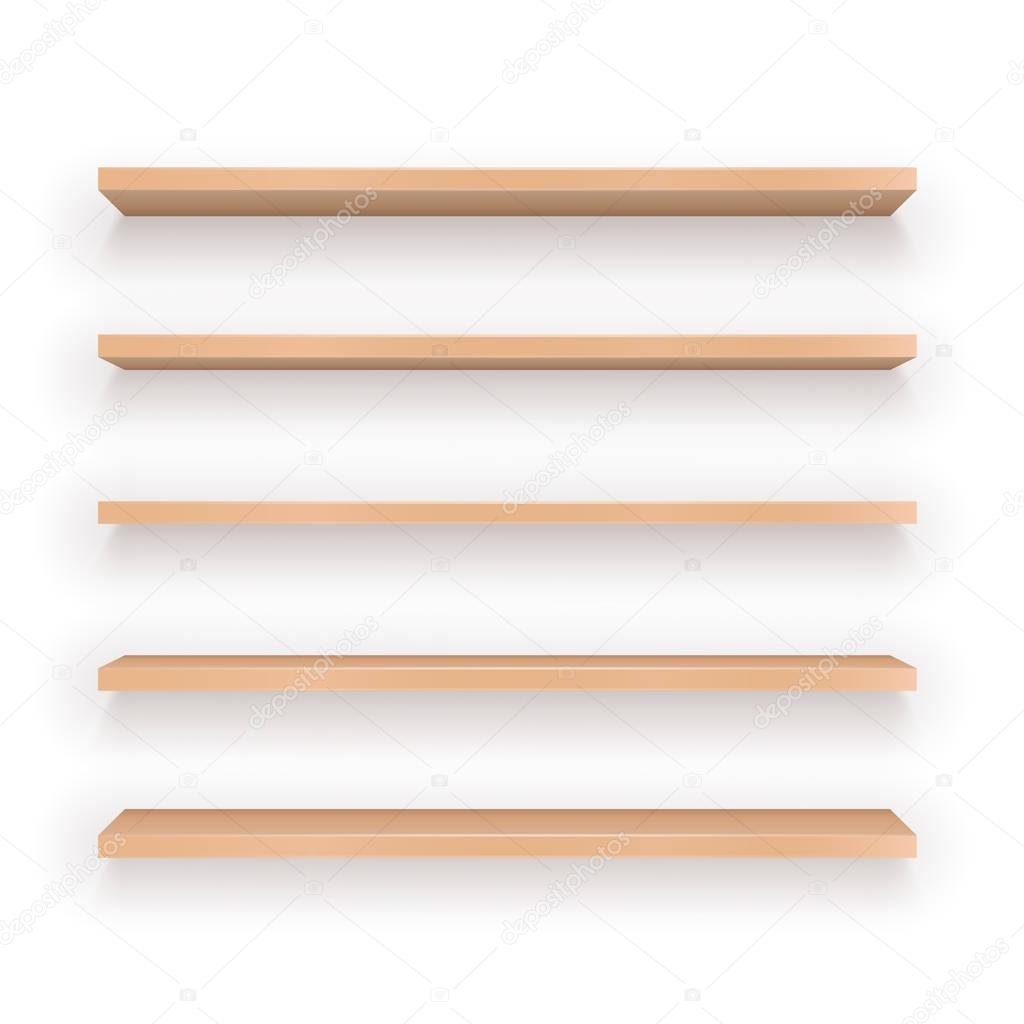Set of vector Wood Shelves with difference view angle on white background