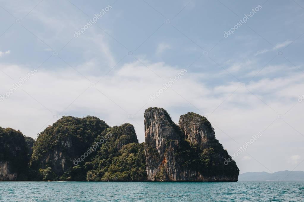 Beautiful scenic cliffs in ocean at Krabi, Thailand