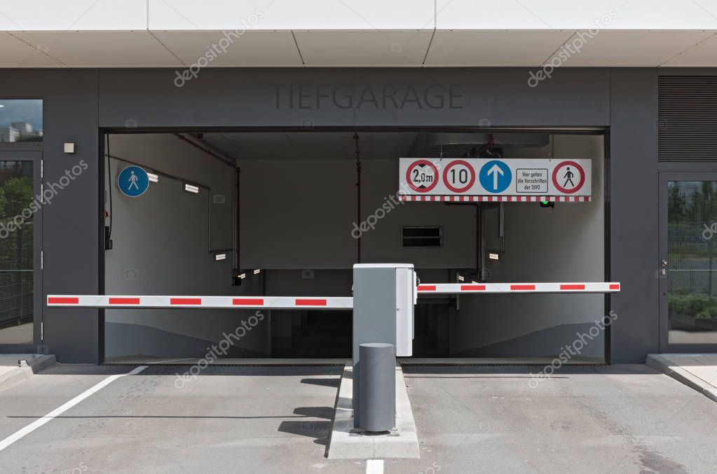 - FRANKFURT, GERMANY-JULY 17, 2017: Entry and exit of an underground car park at the exhibition center in Frankfurt am Main, Germany