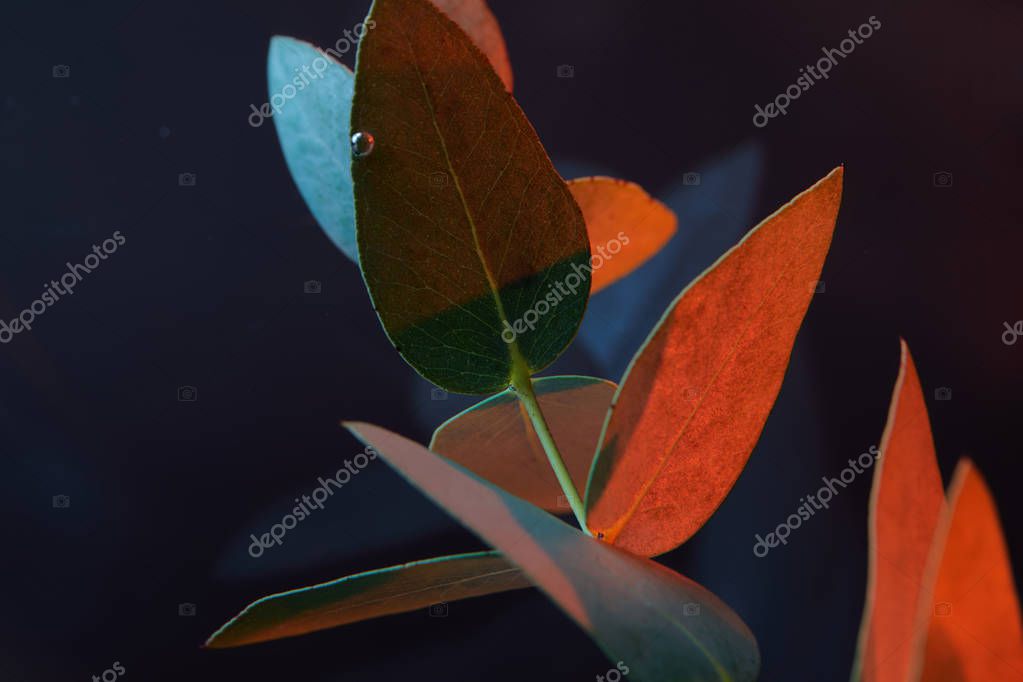 Close up view of eucalyptus plant with green leaves in water