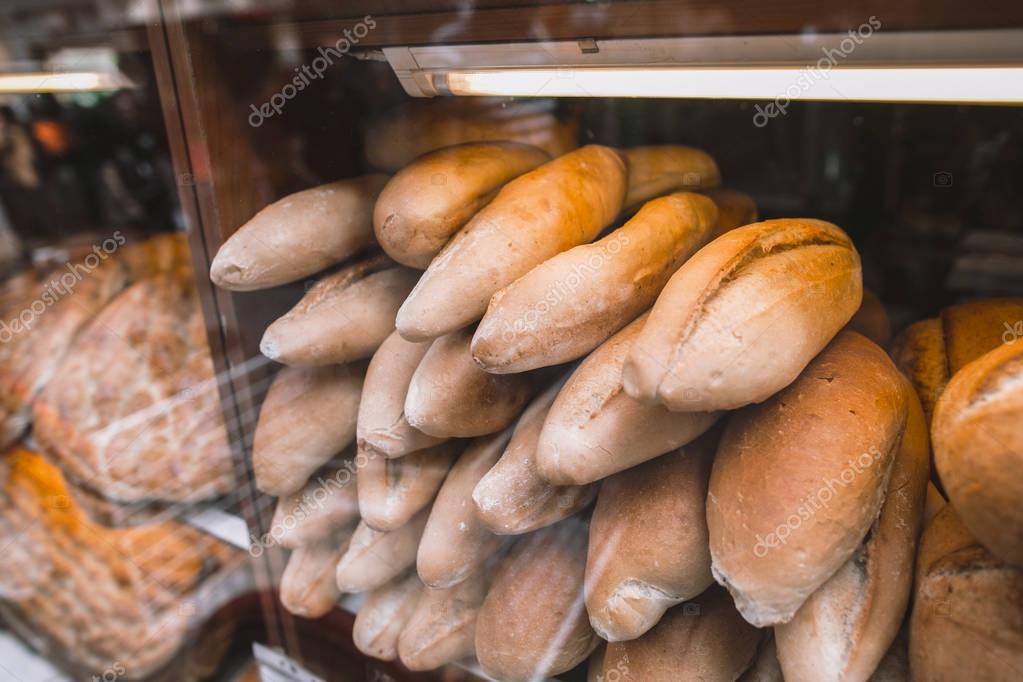 Loafs on fresh bread at showcase in Istanbul, Turkey