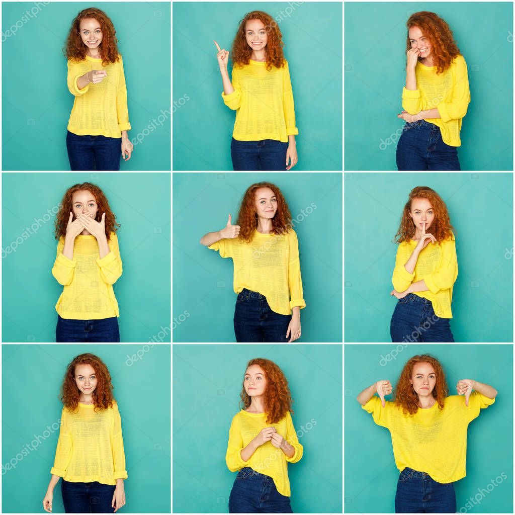 FUN SET BEAUTIFUL HAPPY SURPRISE BUSINESS PERSON STUDIO GIRL FEMALE YOUNG ADULT PEOPLE HAPPINESS CHEERFUL PORTRAIT CAUCASIAN SMILE PLAYFUL FACE CHARACTER EMOTION EXPRESSION MULTIPLE WOMAN EMOTIONAL MUSIC CAMERA FACIAL MOSAIC LADY COLLECTION NEGATIVE ANGRY MANY SERIOUS POSITIVE DIFFERENT SADNESS SAD FEAR COLLAGE GESTURING GRIMACING SERIES REDHEAD 4X4
