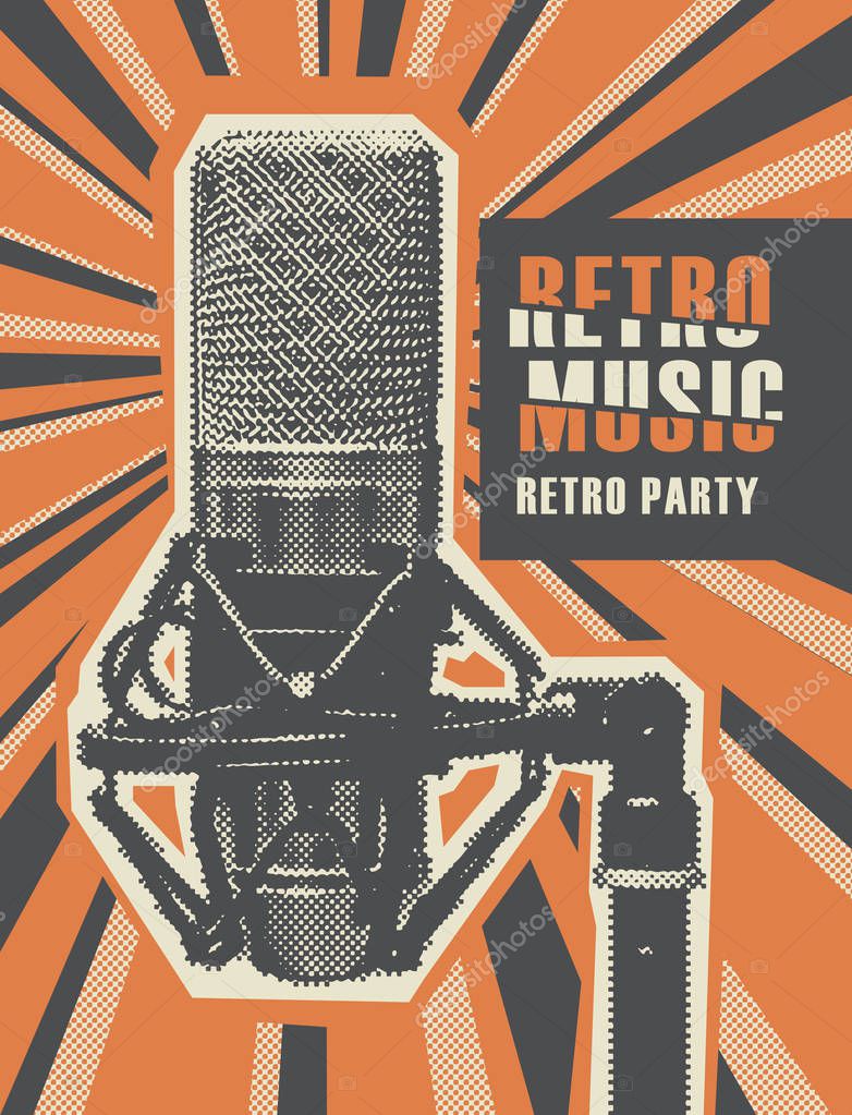 - Retro music poster with a realistic microphone
