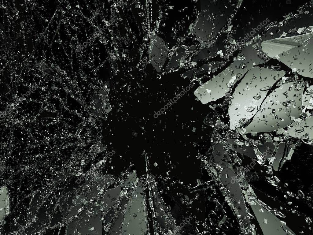 - Shattered or demolished glass over black