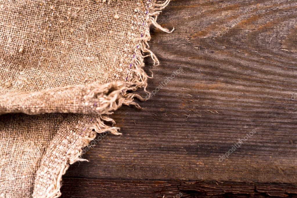 burlap hessian sacking on wooden background