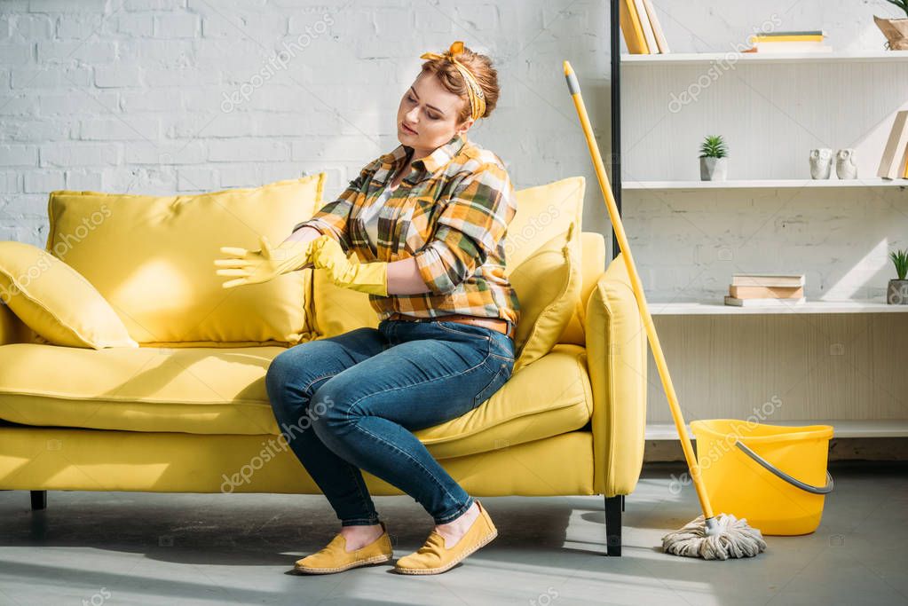 BEAUTIFUL PERSON FEMALE ADULT PEOPLE CAUCASIAN ANTISEPTIC DOMESTIC INTERIOR HOME WOMAN HYGIENE INDOORS TOOLS ALONE ATTRACTIVE APARTMENT CASUAL HOUSEHOLD CLEANING WEARING HOUSEWORK HOUSEKEEPER HOUSEKEEPING CLEANUP DISINFECT HOUSECLEANING HOUSEWORKING HOMEMAKER COPY SPACE SELECTIVE FOCUS LIVING ROOM RUBBER GLOVES DOMESTIC SUPPLIES