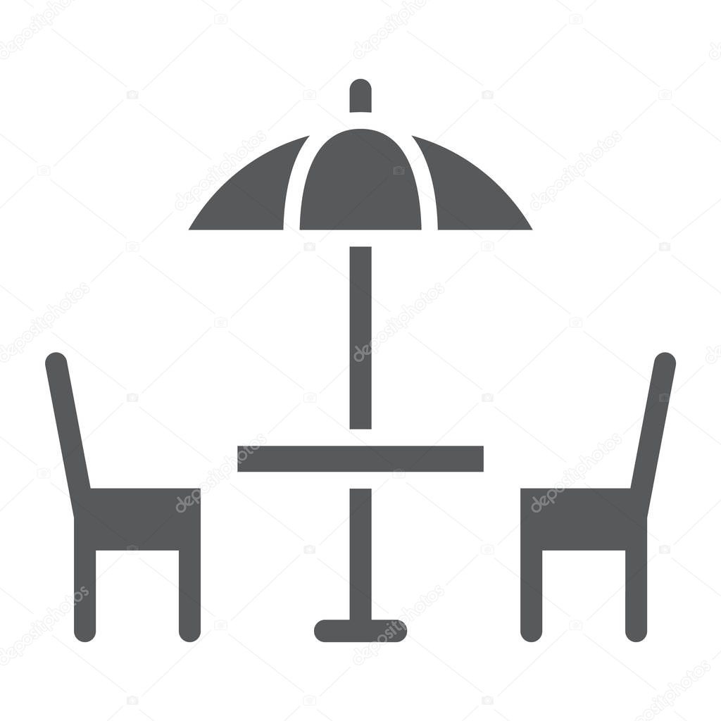 Street Cafe glyph icon, table and chair, umbrella sign vector graphics, a solid pattern on a white background, eps 10.