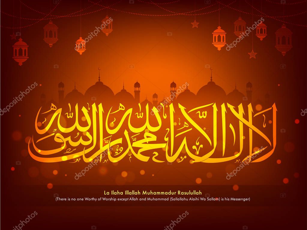 - Arabic Islamic calligraphy of dua (wish) La Ilaha Illallah Muhammadur Rasulullah.
