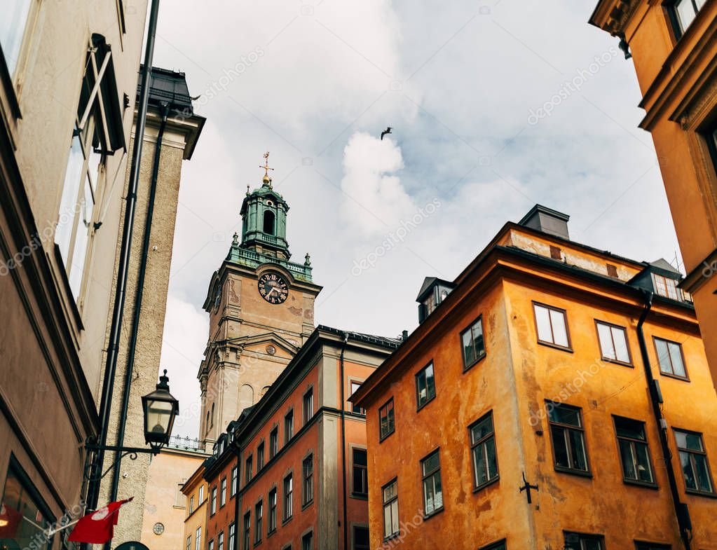 urban scene with beautiful colorful buildings in old town of Stockholm, Sweden