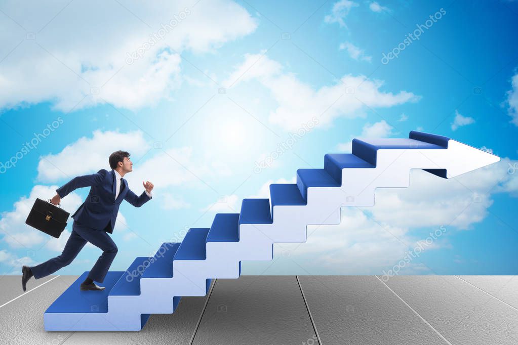 - Businessman climbing career ladder in business concept