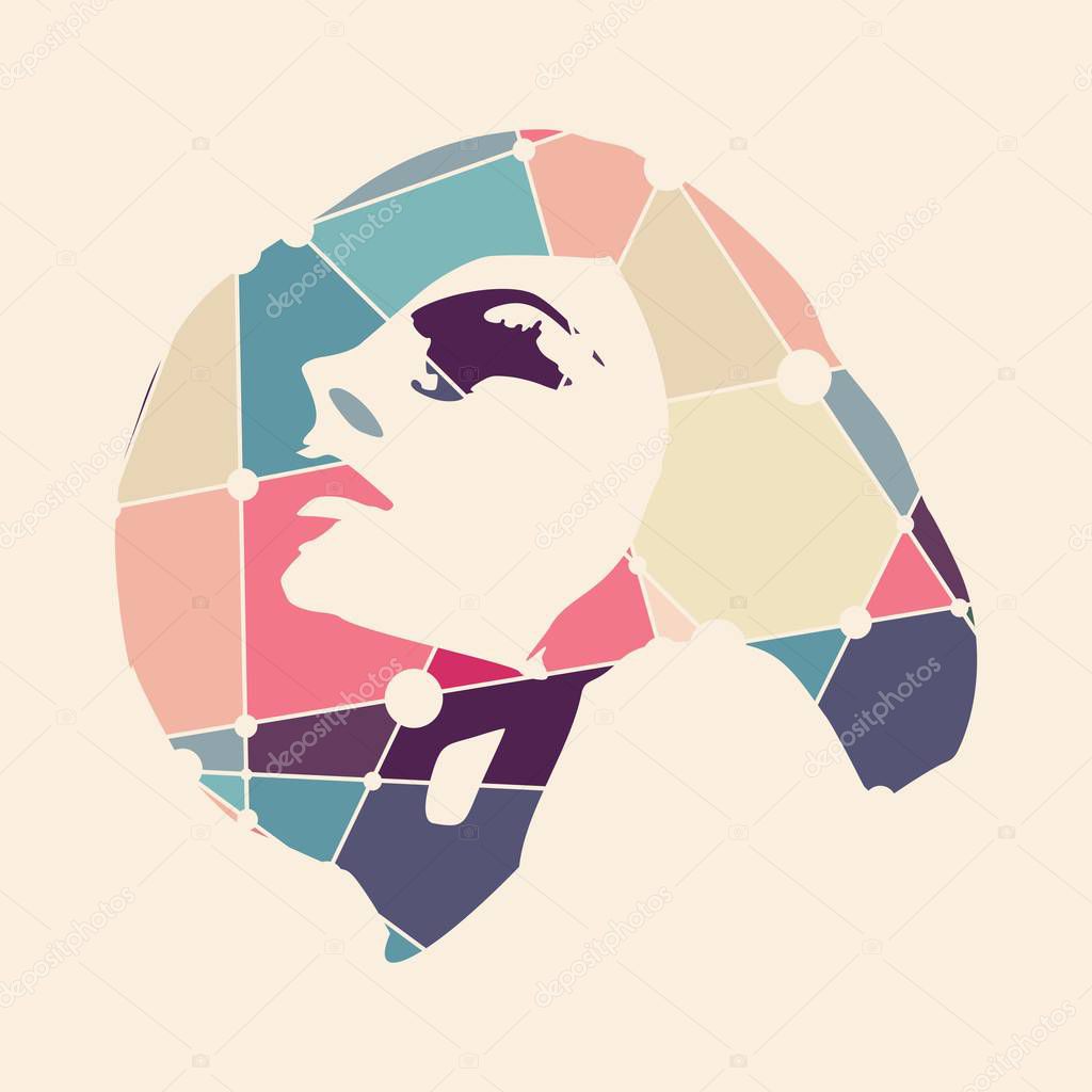 Face profile view. Elegant silhouette of a female head. Silhouette textured by lines and dots pattern