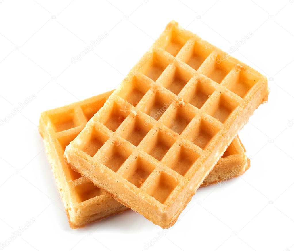 Two waffles isolated on white background, top view