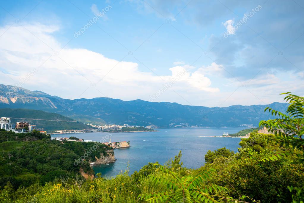 landscape of adriatic sea and coastal town in Budva, Montenegro