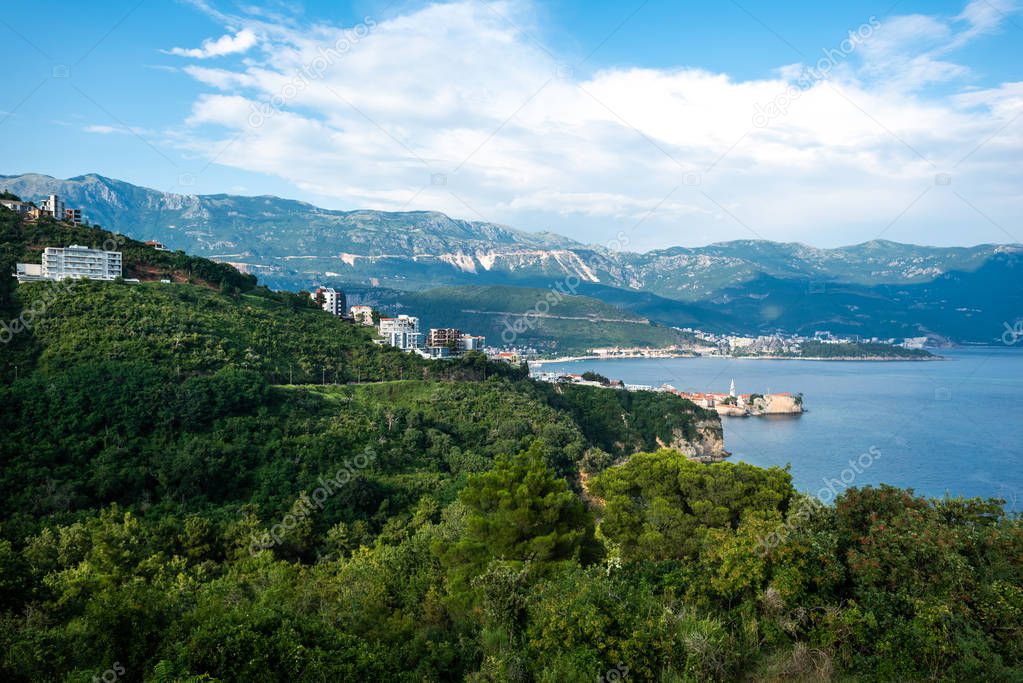 - beautiful view of adriatic sea and forest in Budva, Montenegro