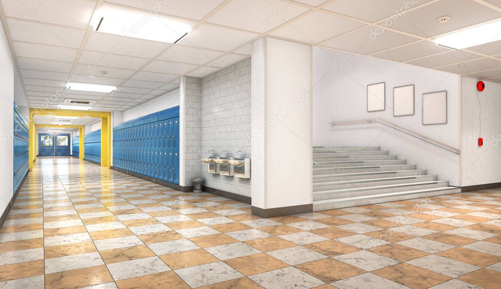 - School corridor interior. 3d illustration