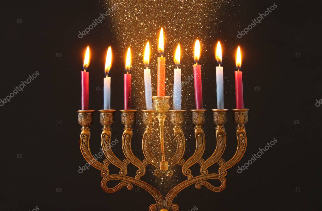 image of jewish holiday Hanukkah background with menorah (traditional candelabra) and candles