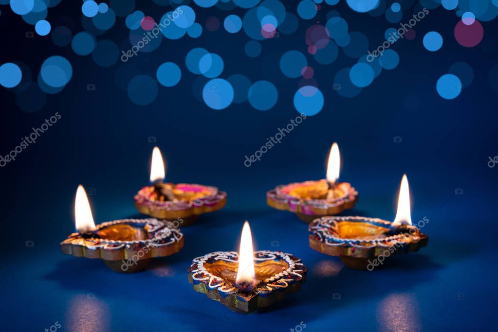 - Happy Diwali - Clay Diya lamps lit during Dipavali, Hindu festival of lights celebration