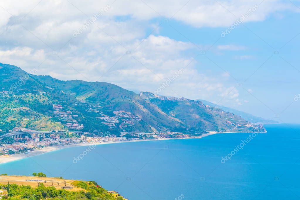 - Aerial view of coastline near sicilian city Taormina, Ital