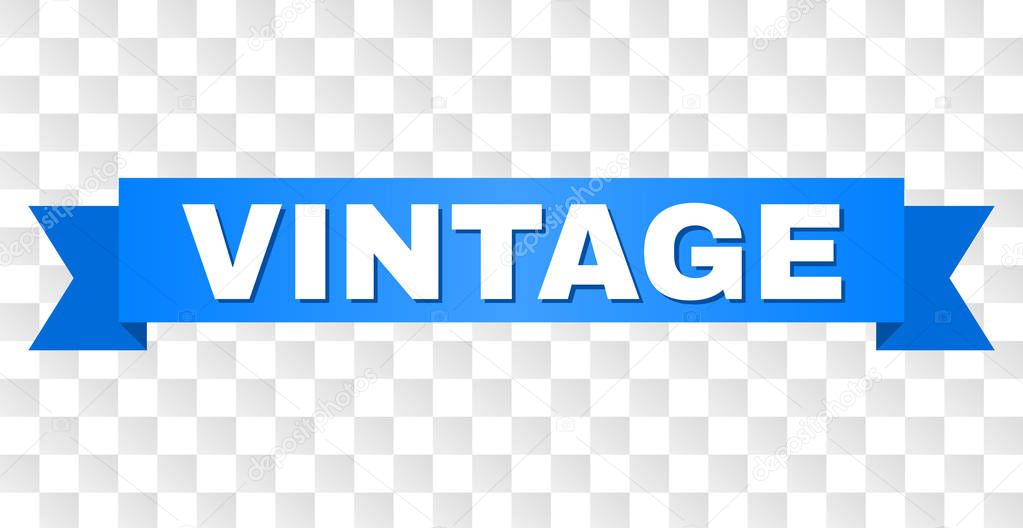 VINTAGE text on a ribbon. Designed with white title and blue tape. Vector banner with VINTAGE tag on a transparent background.